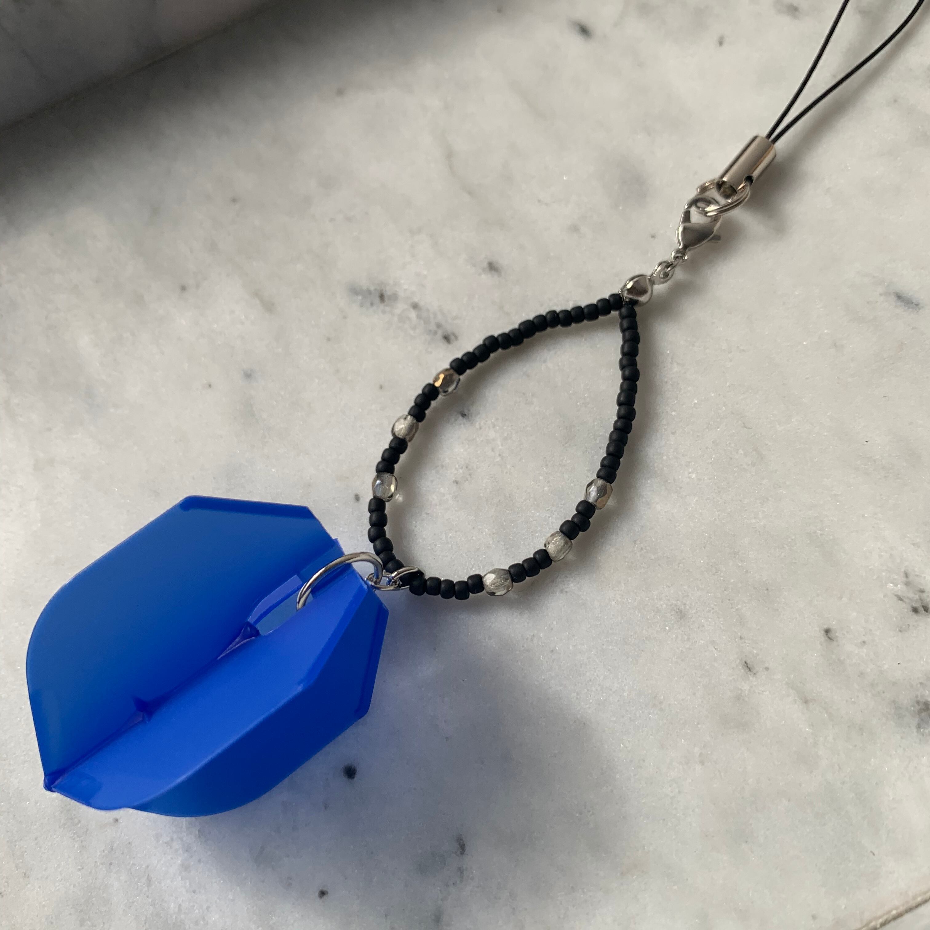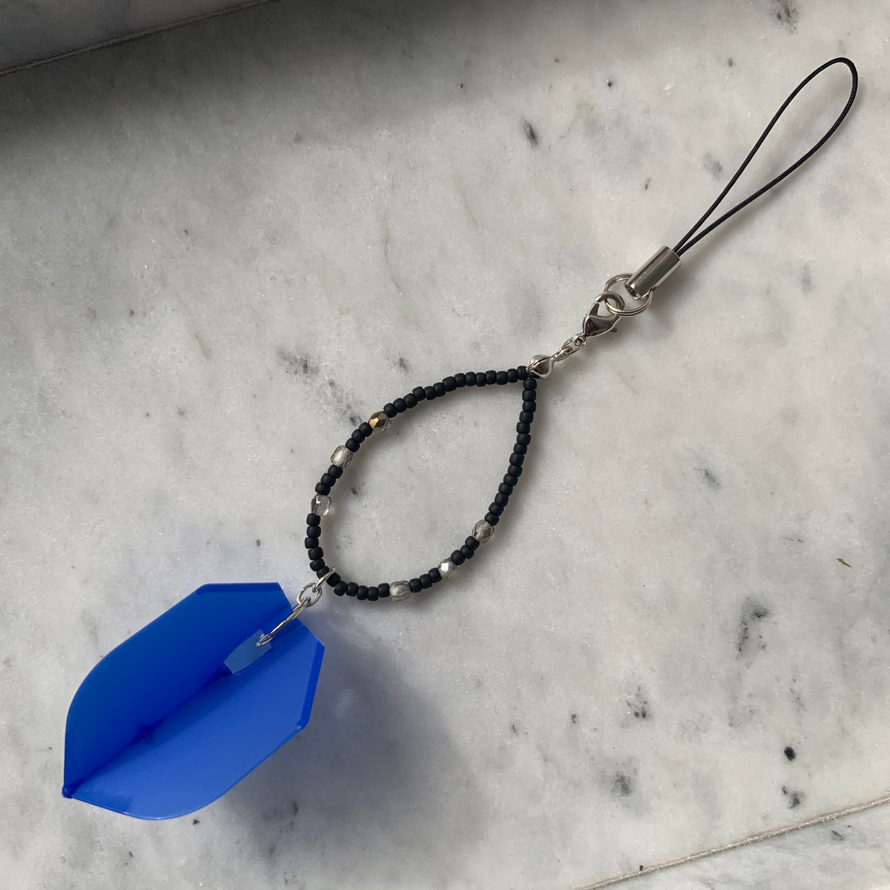 フライトキーホルダー◆ロケット/ブルー/シルバー/ビーズ輪