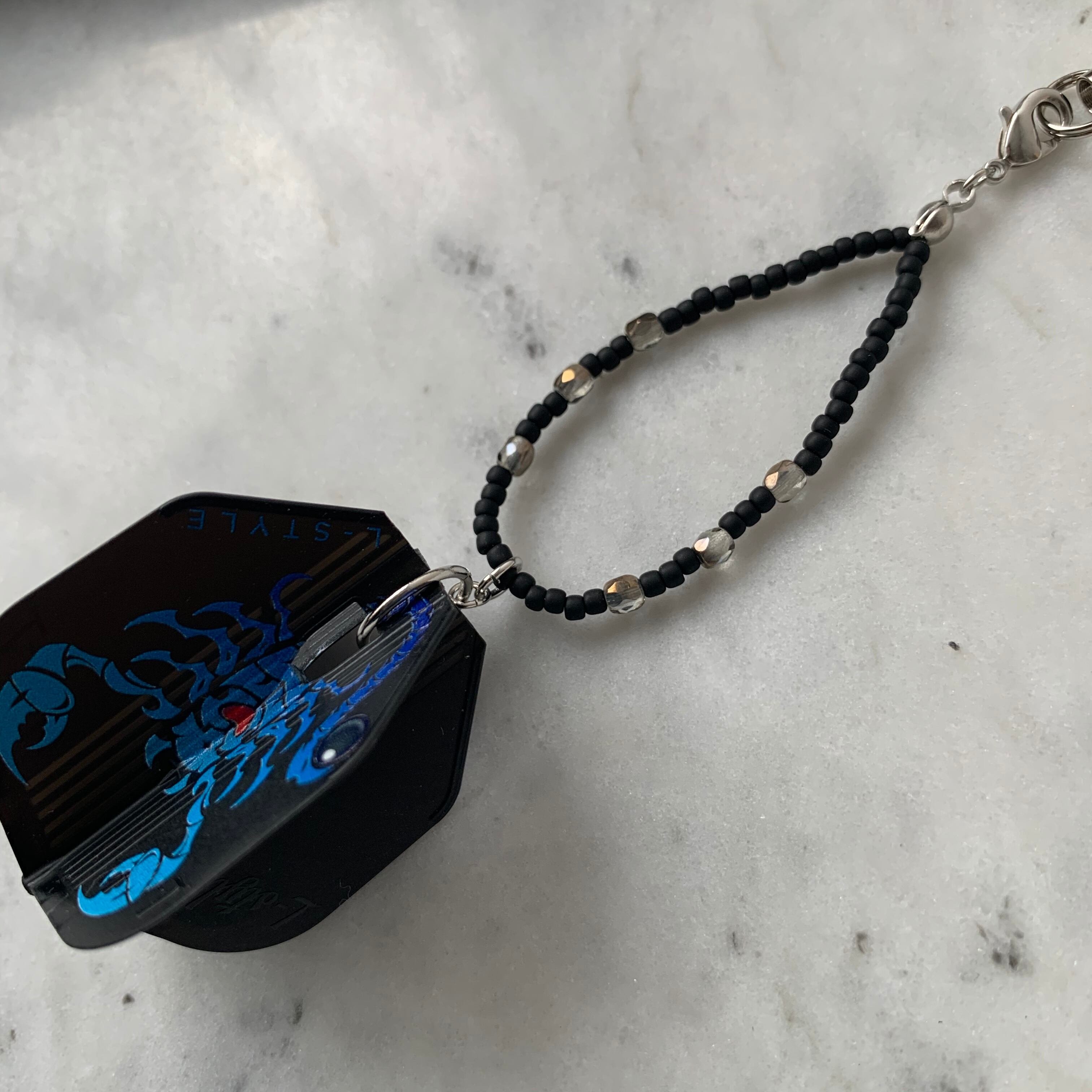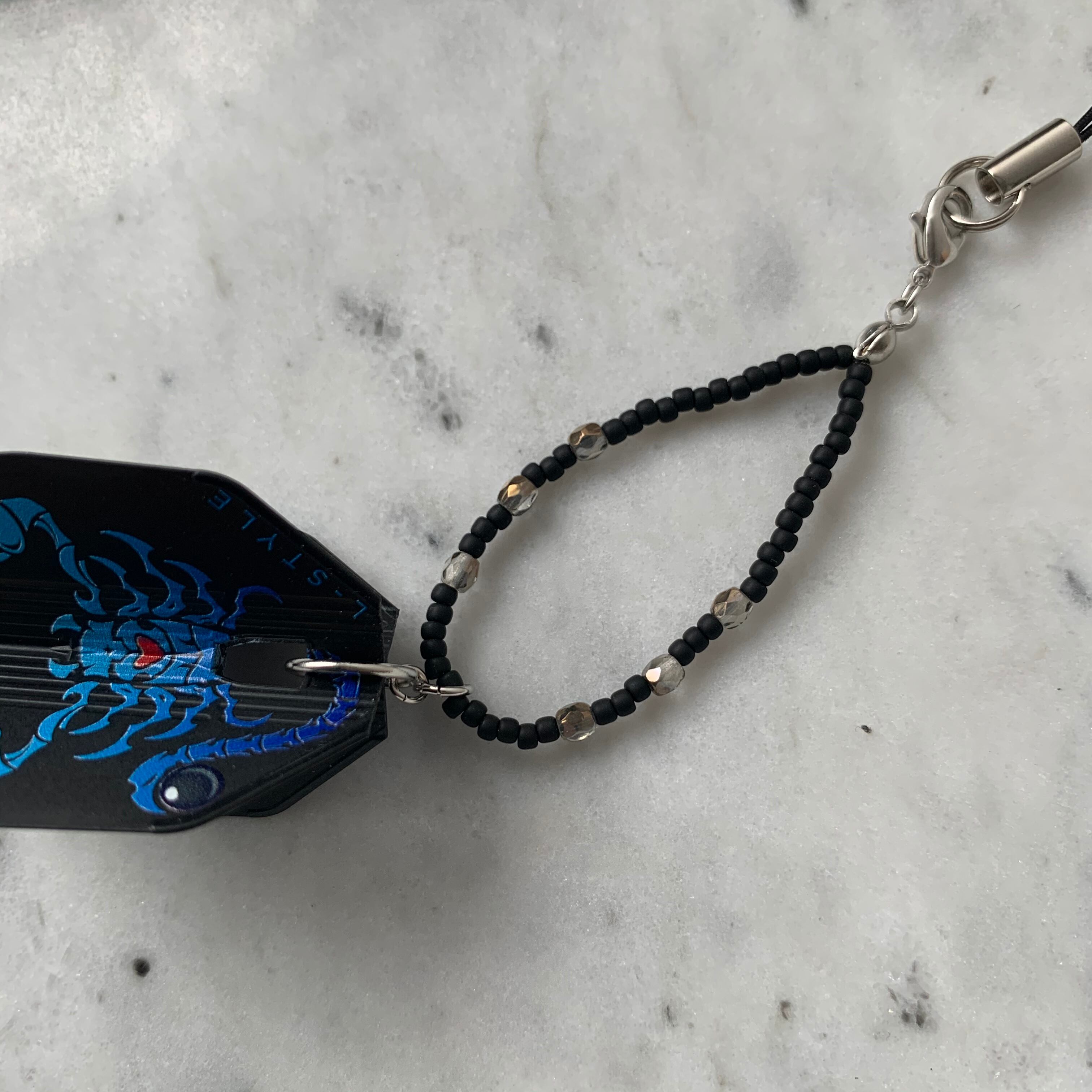 フライトキーホルダー◆DetaHedman/シェイプ/ブラック/シルバー/ビーズ輪