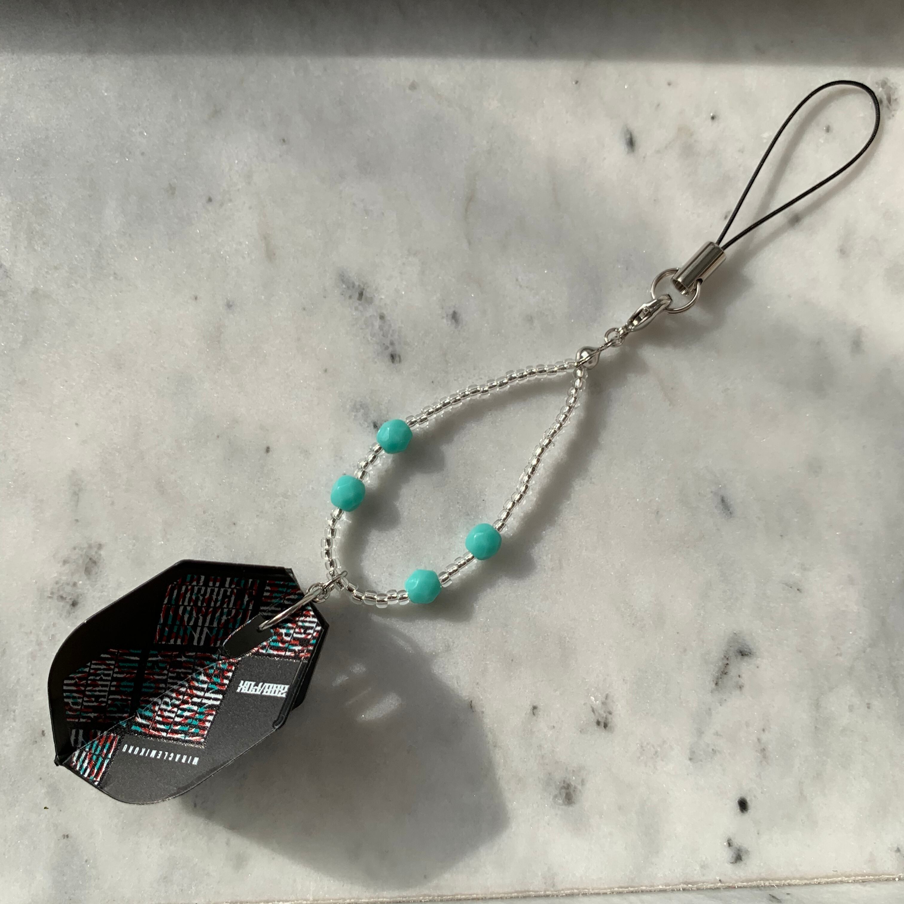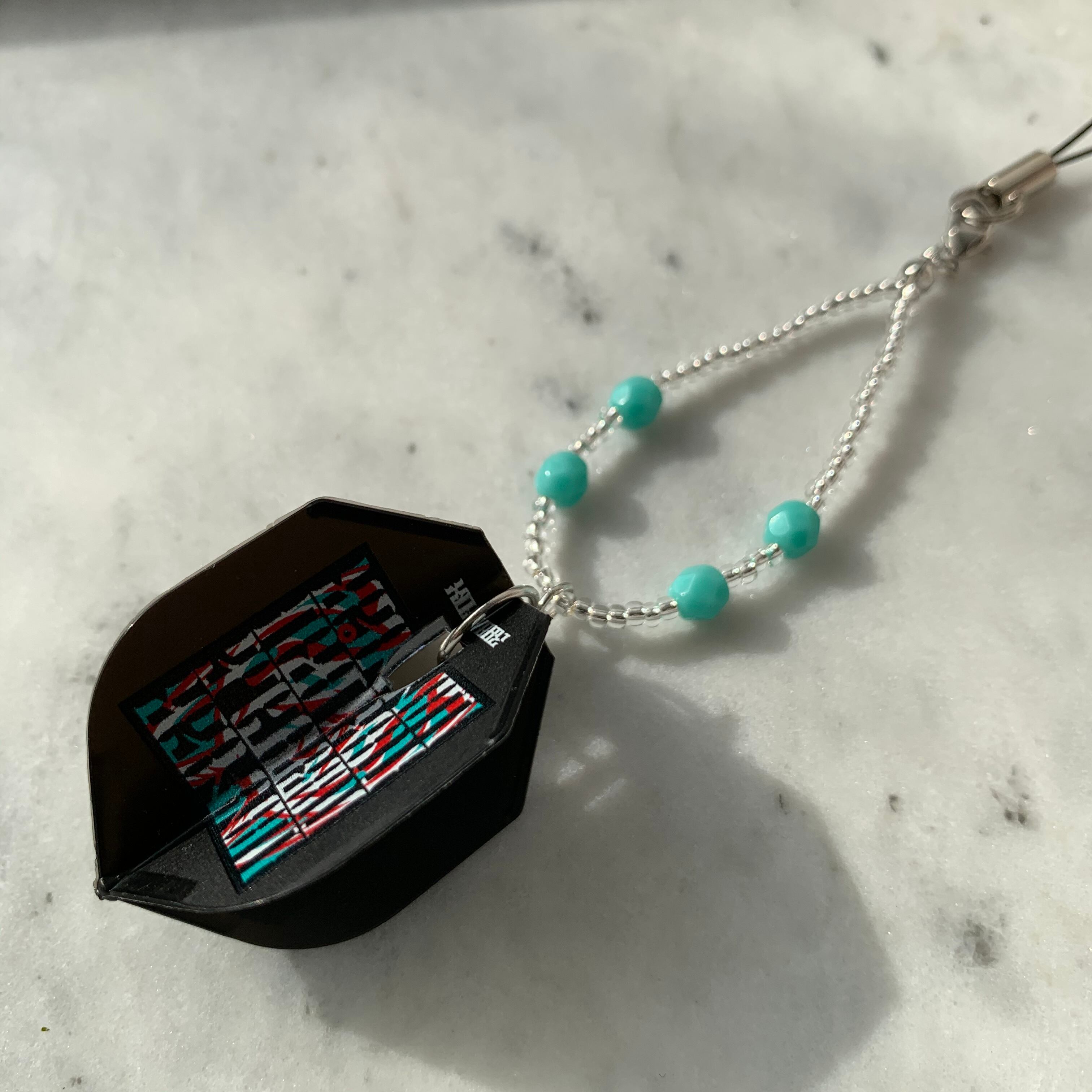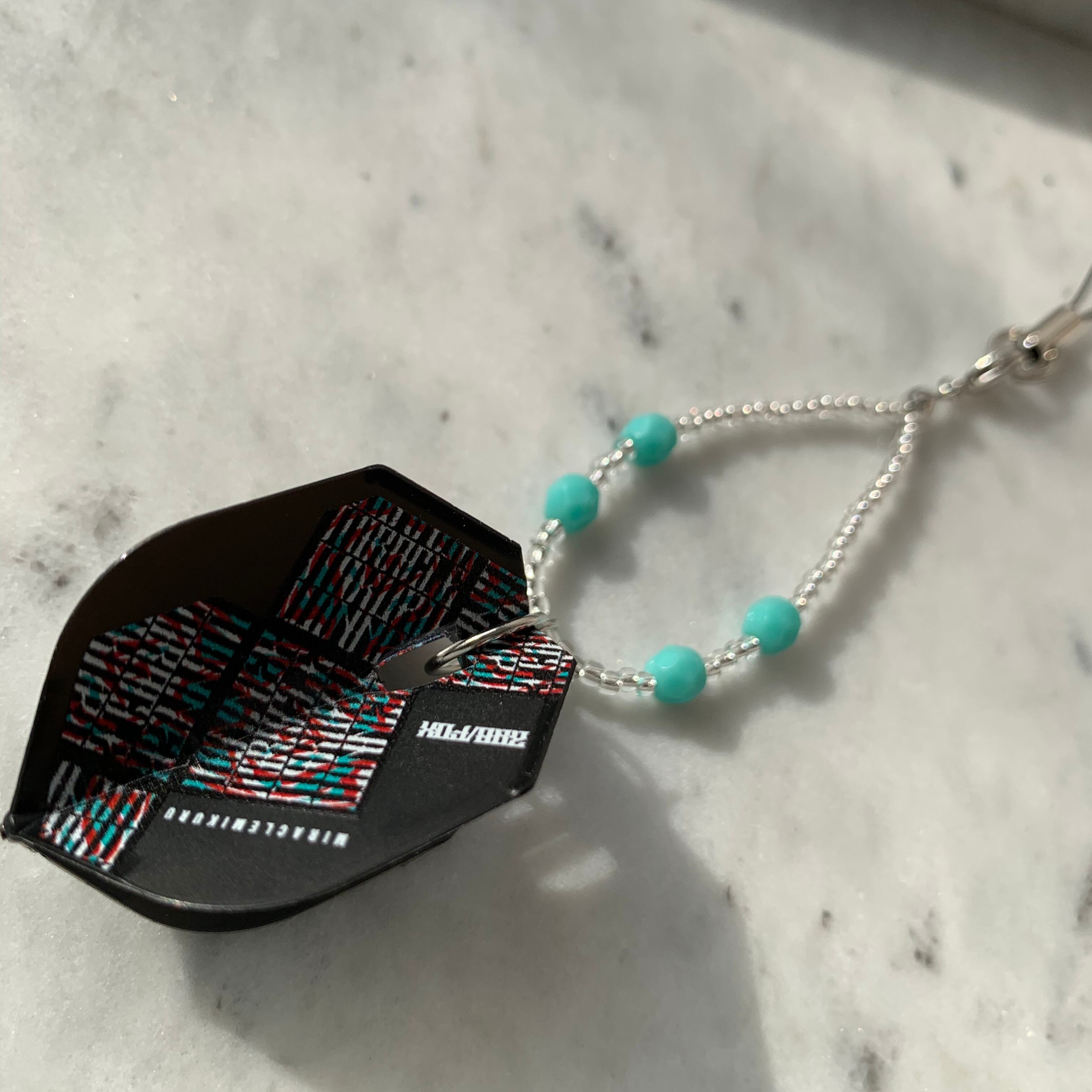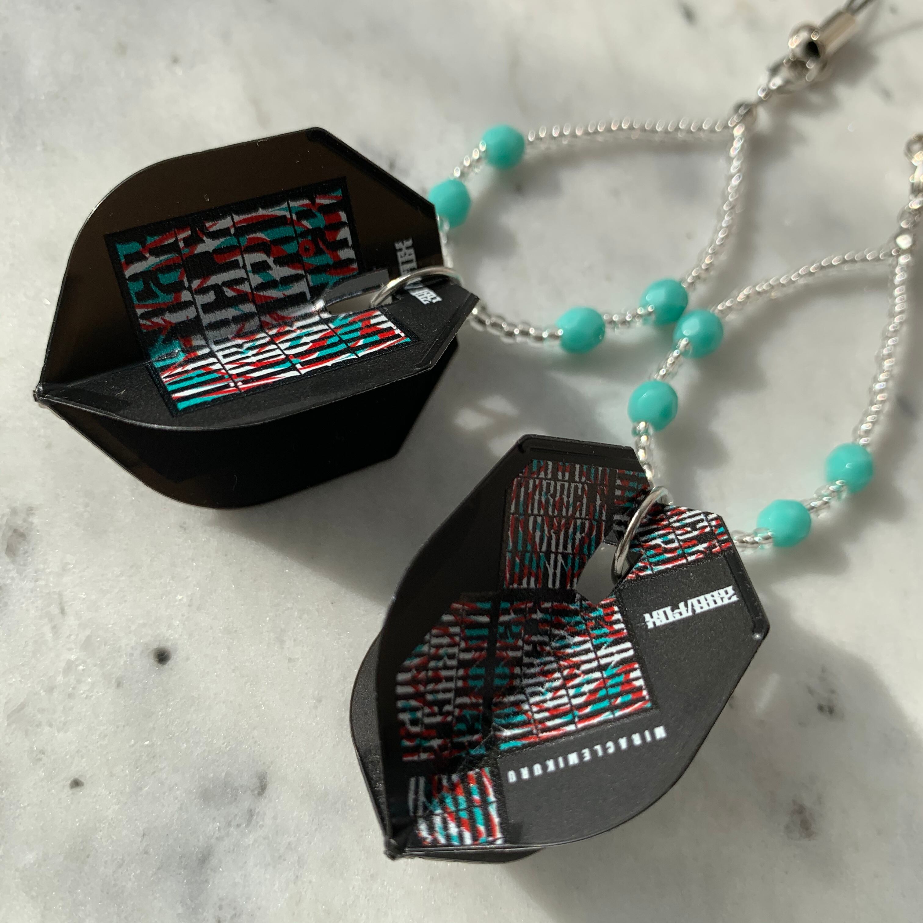 ダーツのプロ鈴木未来選手モデルのフライトを使用したフライトキーホルダー。