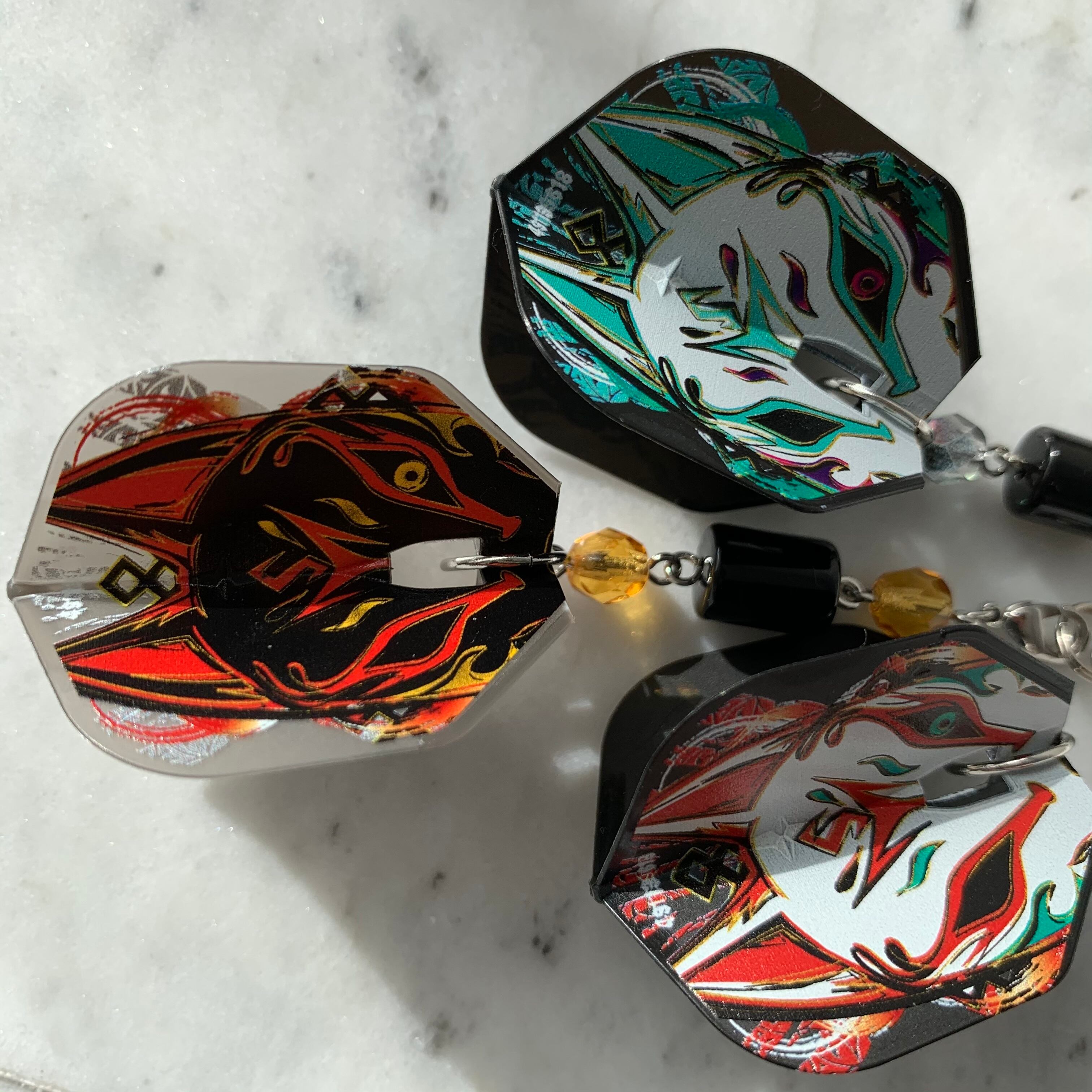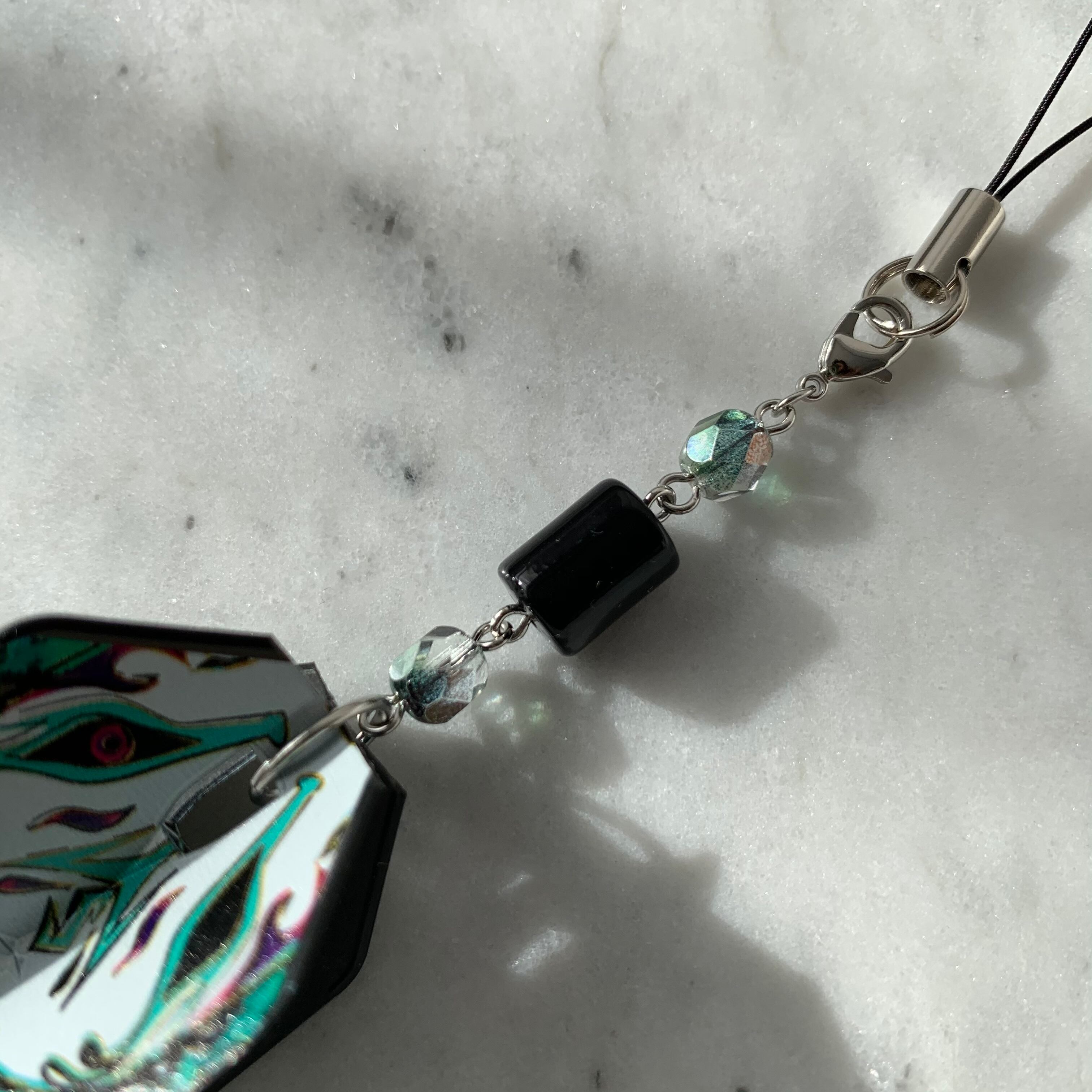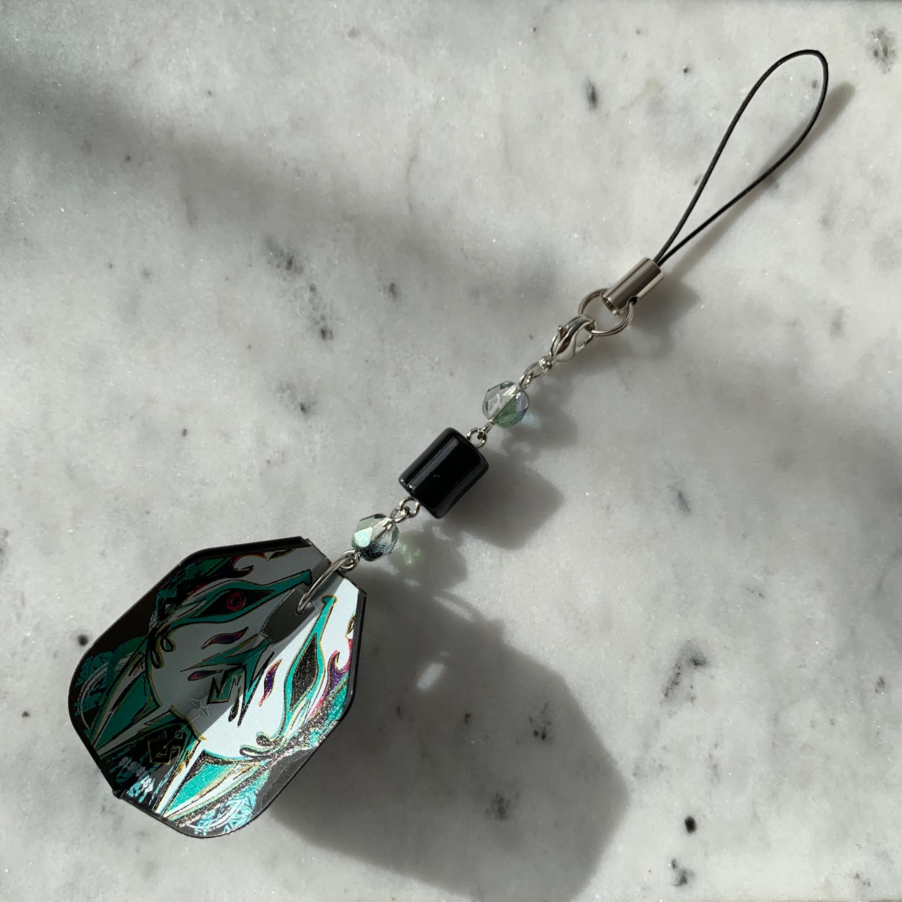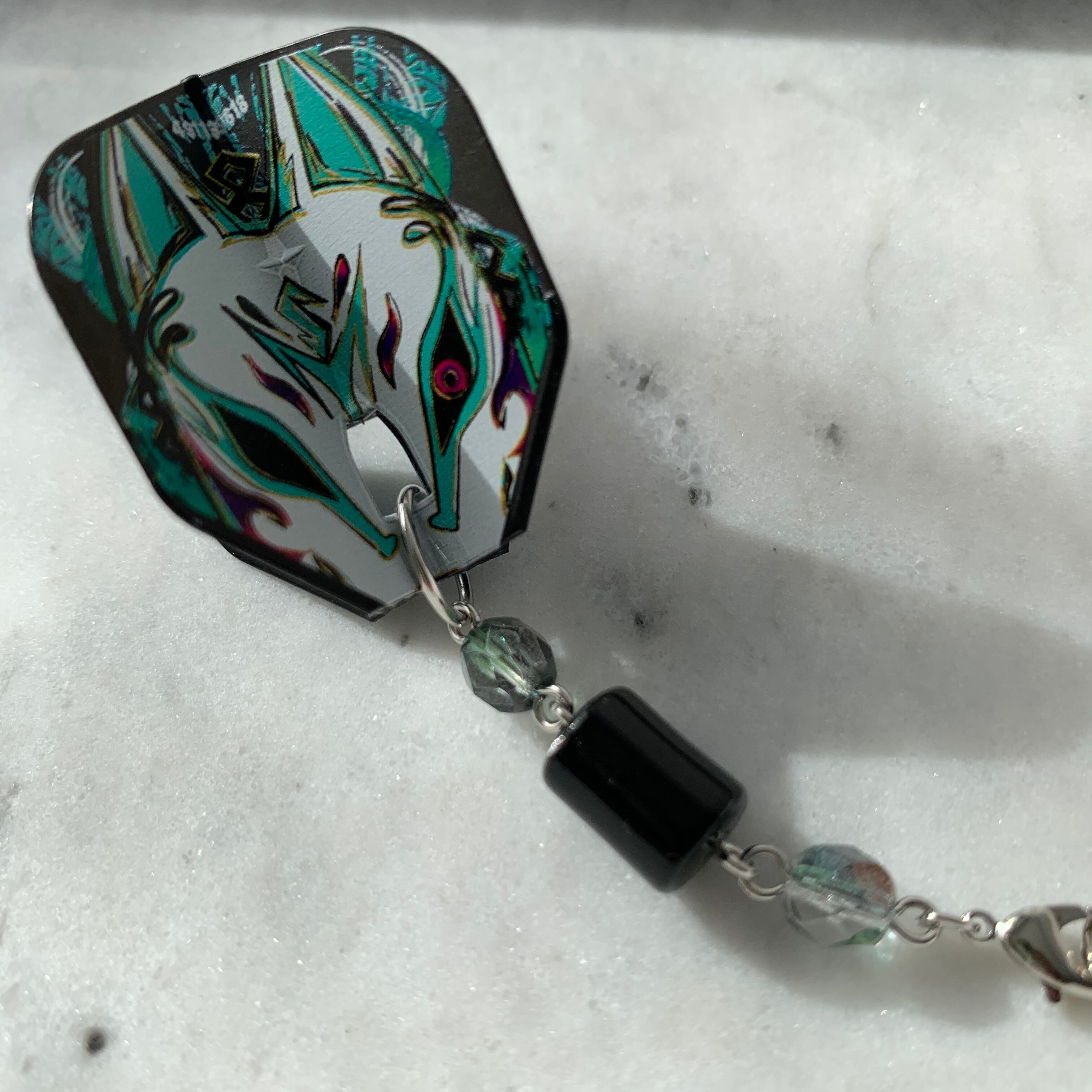 フライトキーホルダー◆鈴木未来/シェイプ/ブラック/狐/ブルーグリーン/シルバー/ビーズ連