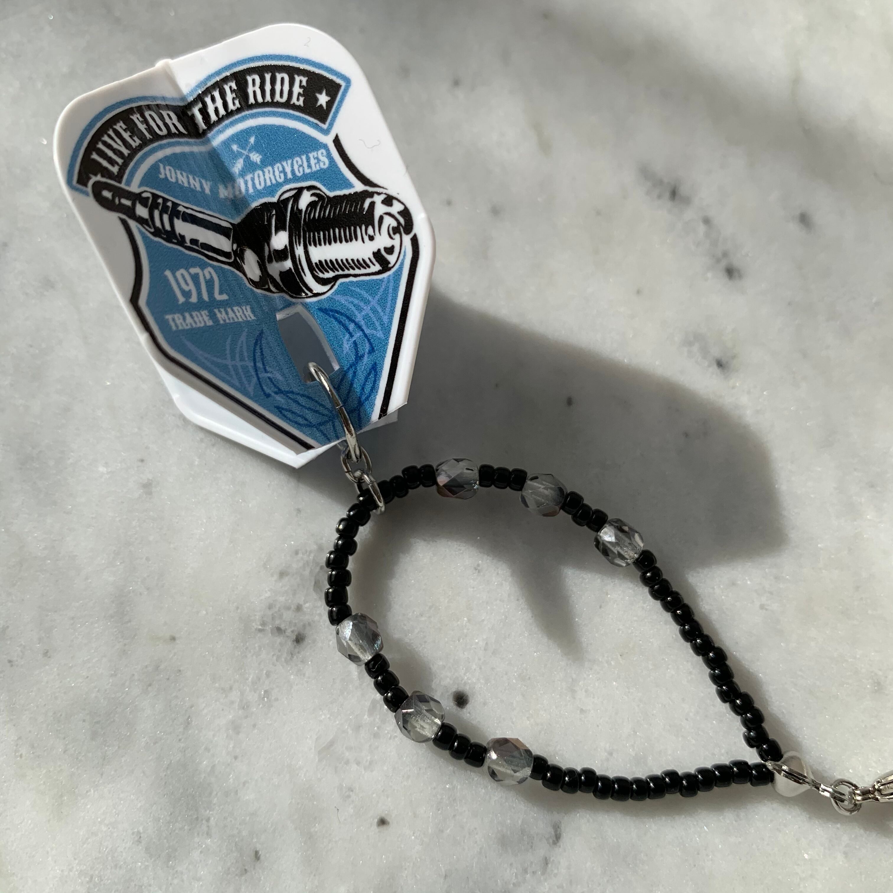 フライトキーホルダー◆安食賢一/シェイプ/ホワイト/ブルー/シルバー/ビーズ輪