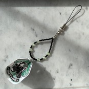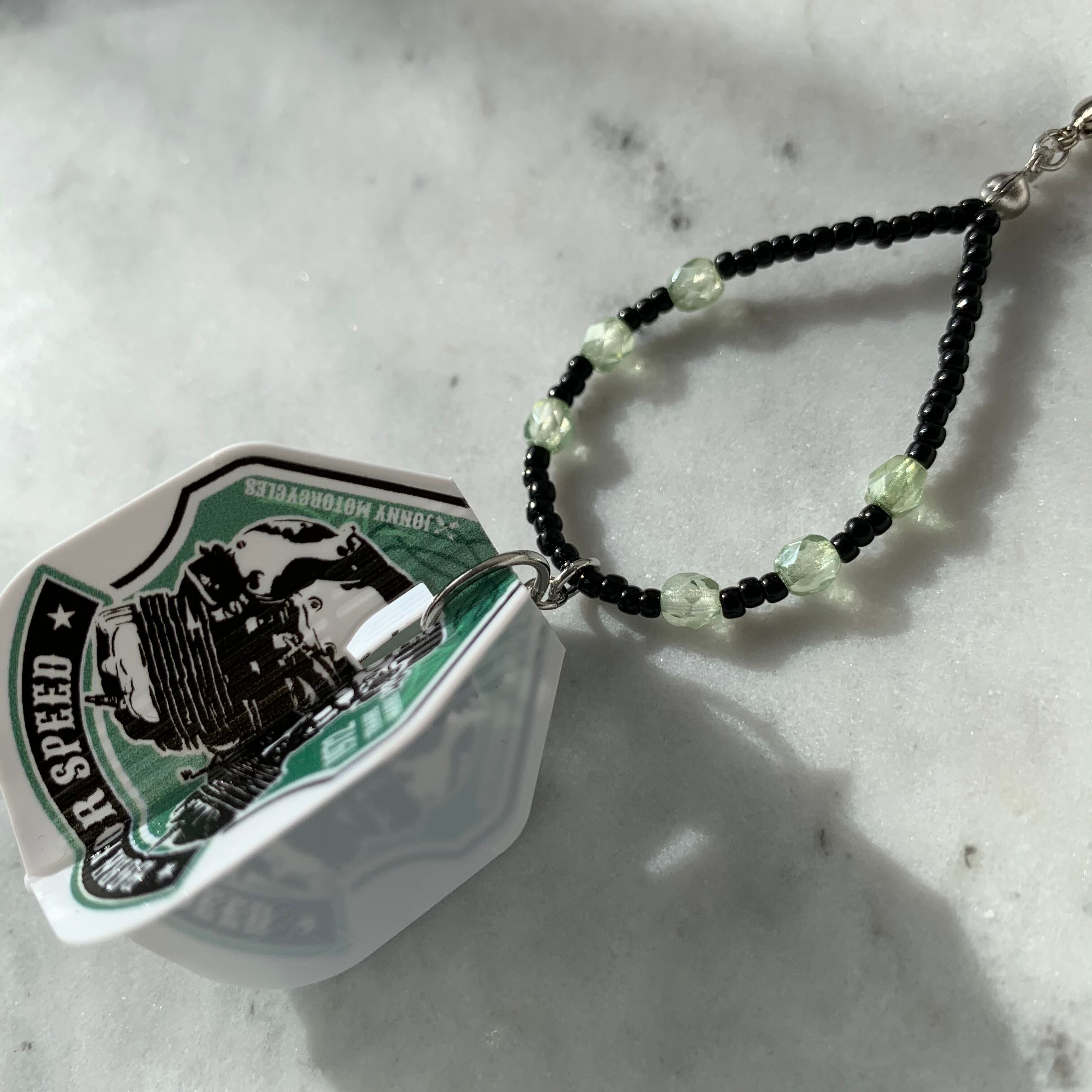 フライトキーホルダー◆安食賢一/シェイプ/ホワイト/グリーン/シルバー/ビーズ輪