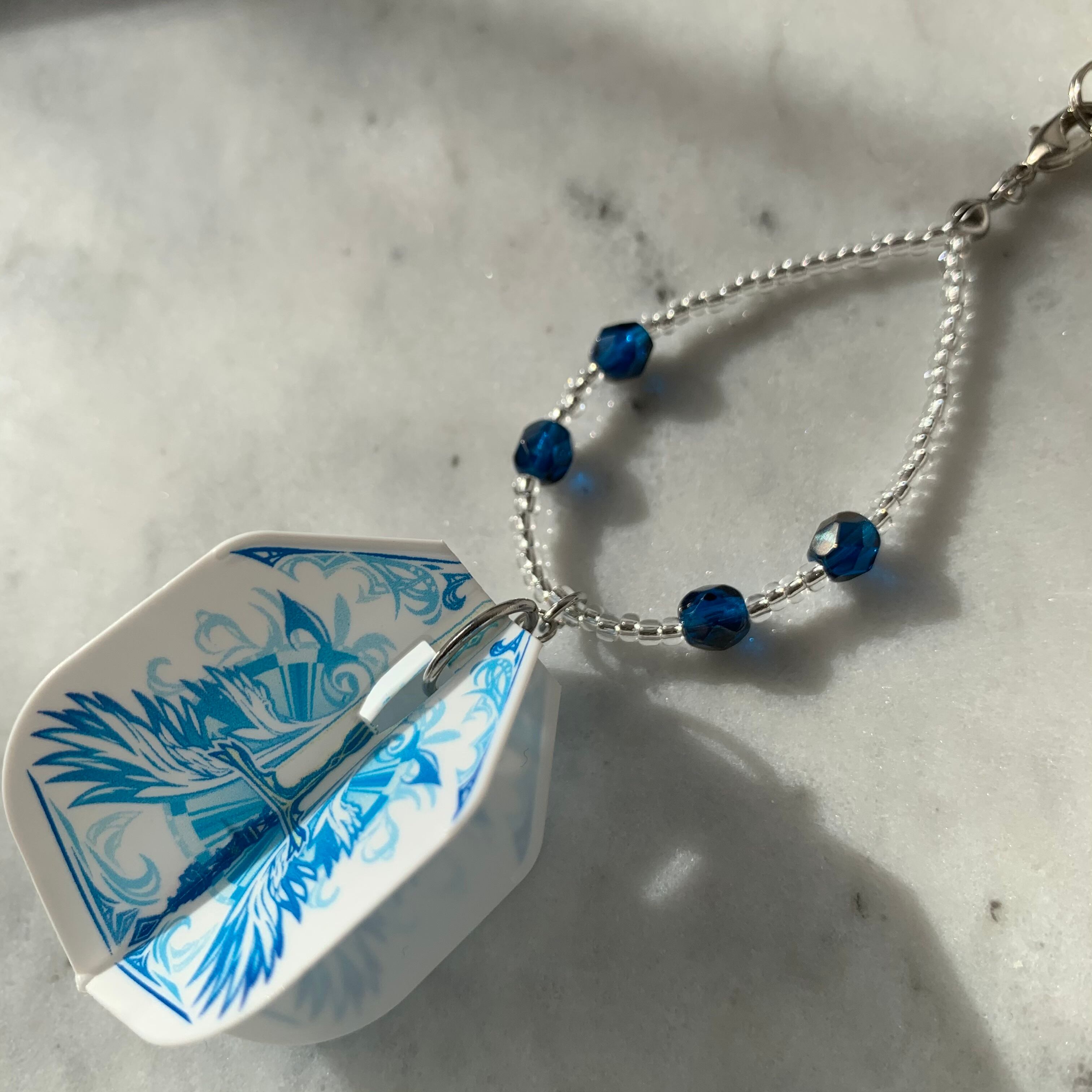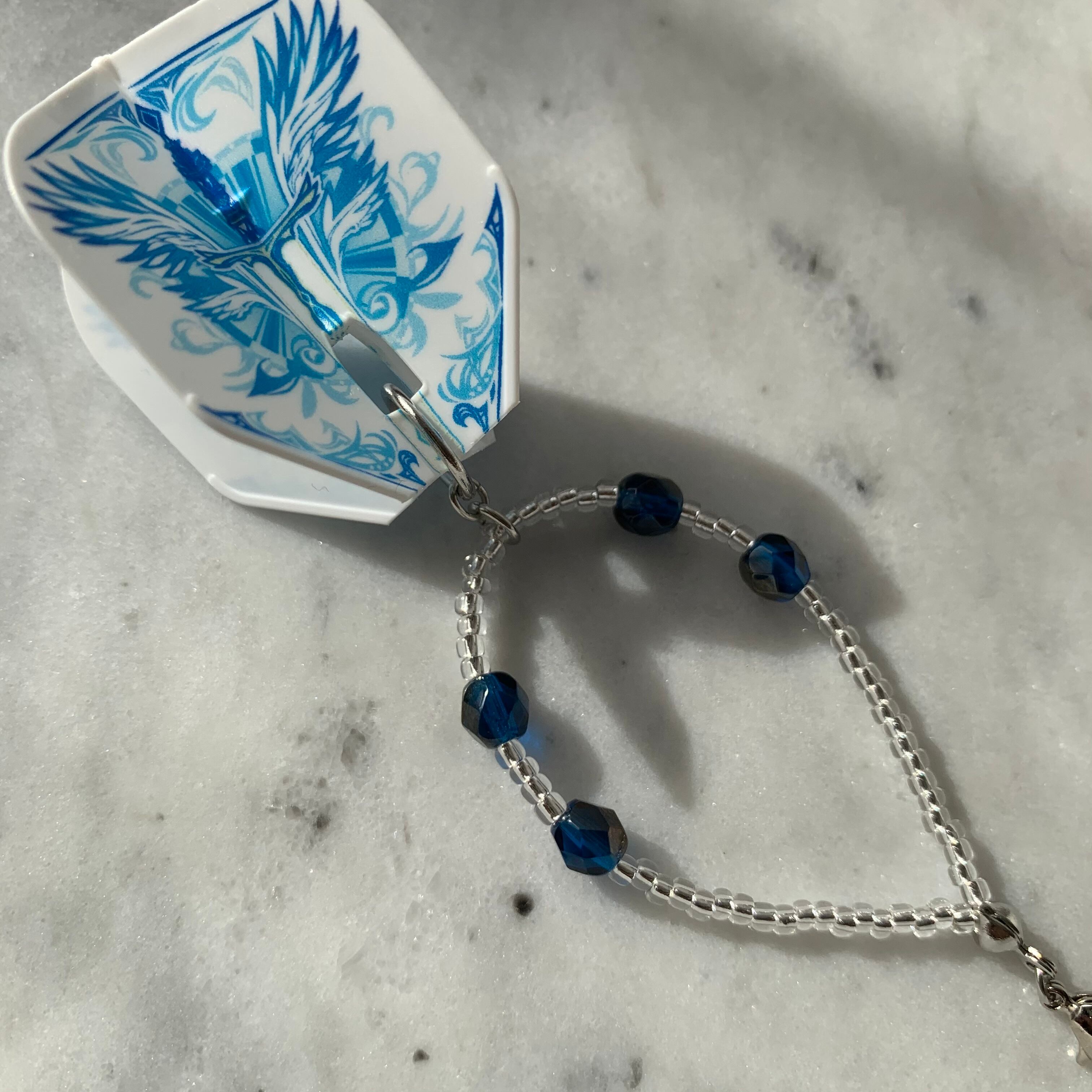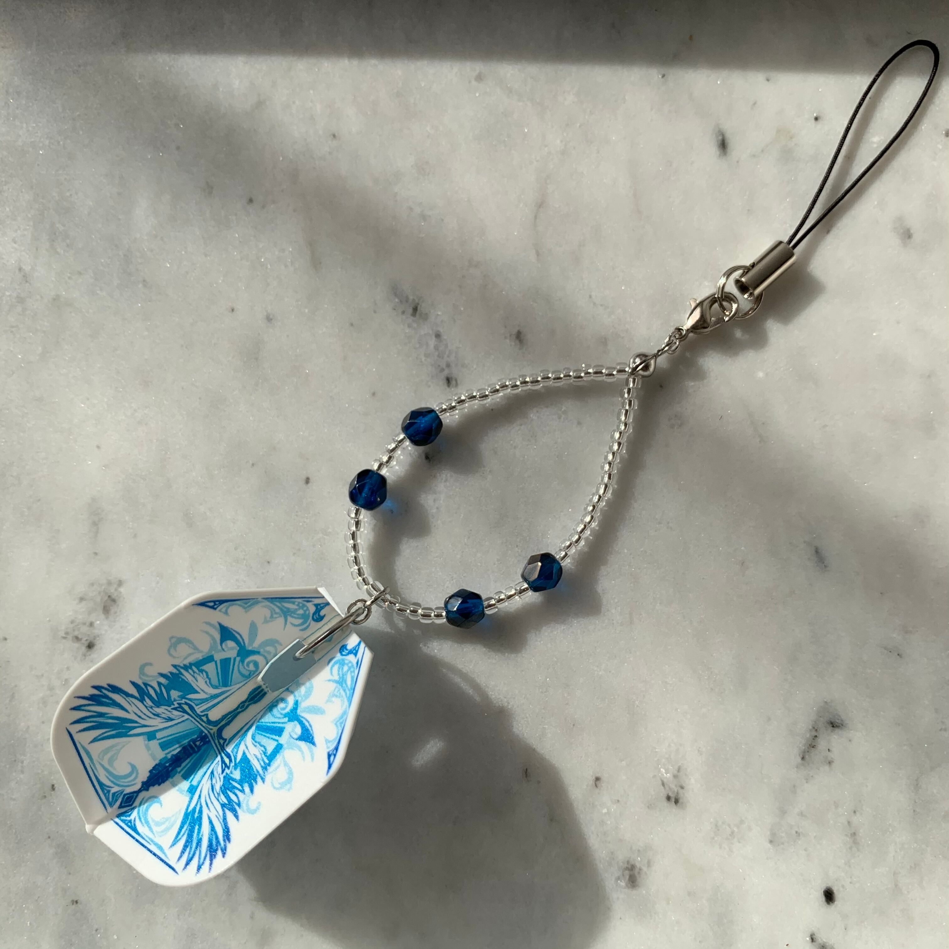 フライトキーホルダー◆藤原徹也/シェイプ/ホワイト/シルバー/ブルー/ビーズ輪