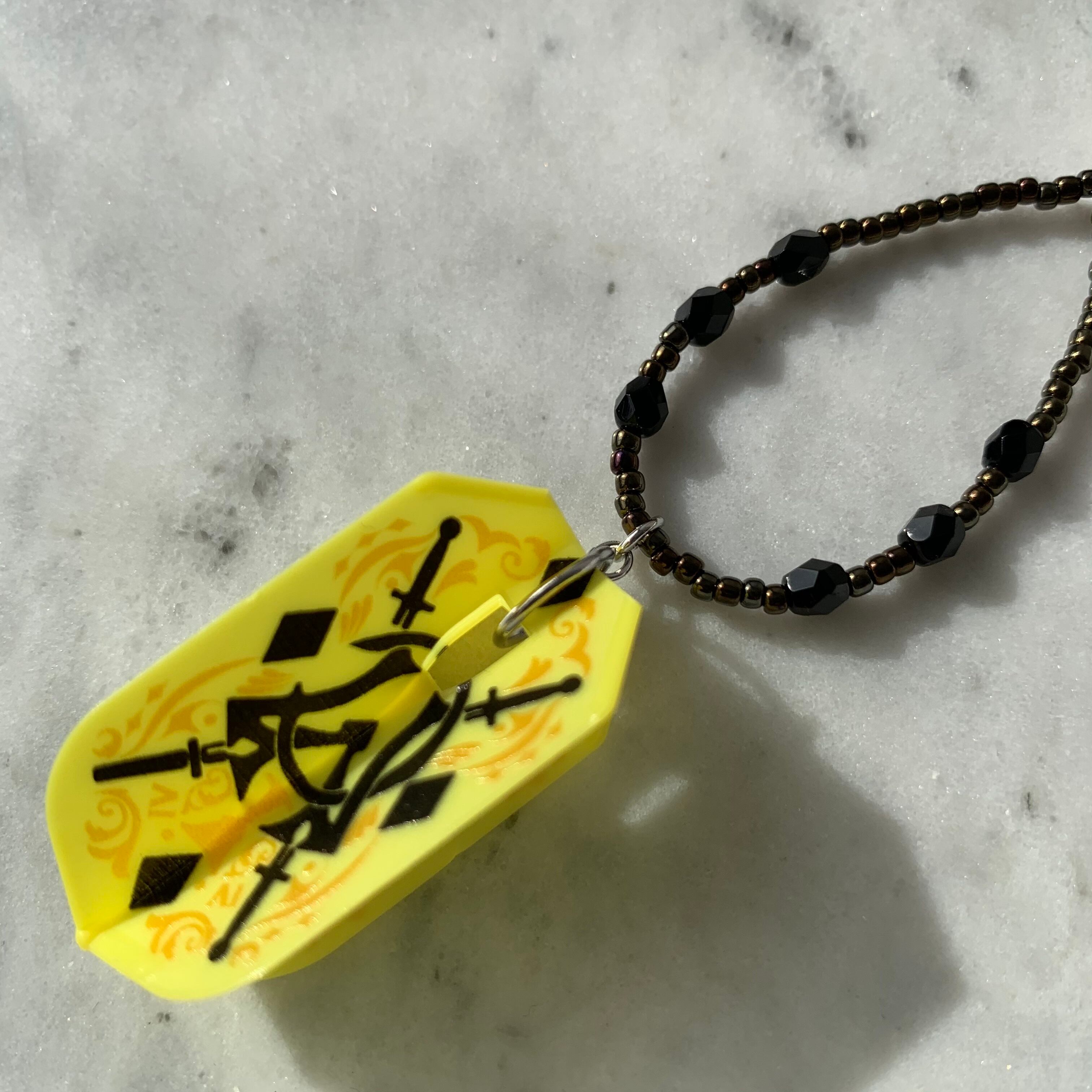 フライトキーホルダー◆知野真澄/スリム/イエロー/シルバー/変光ブラック/ビーズ輪