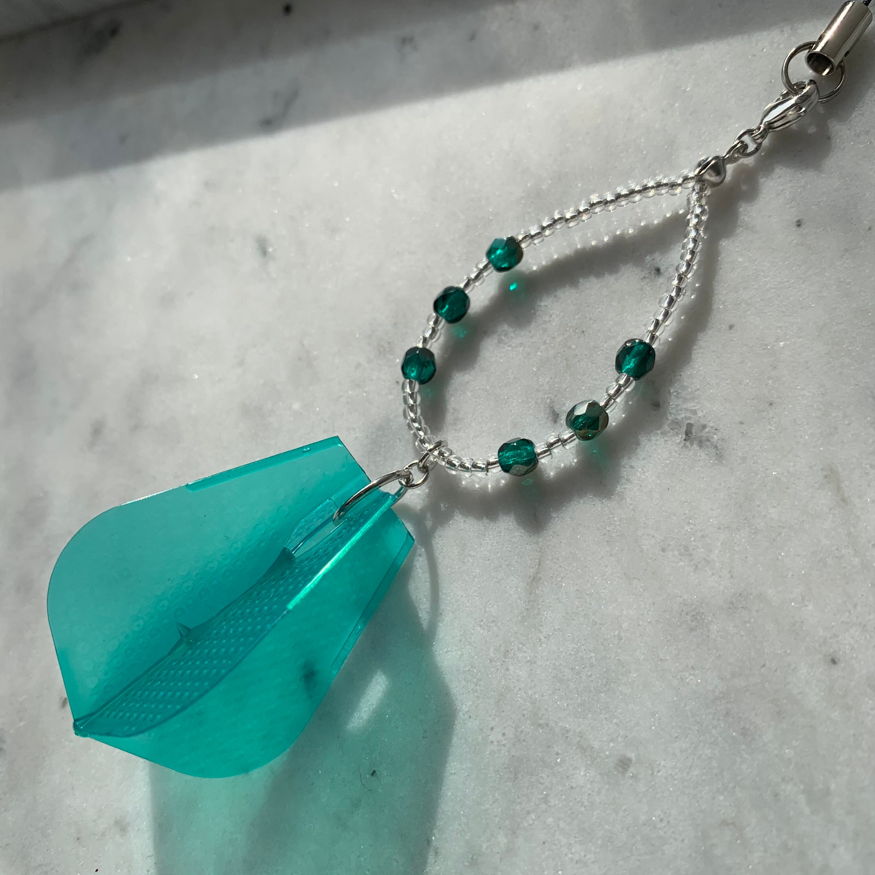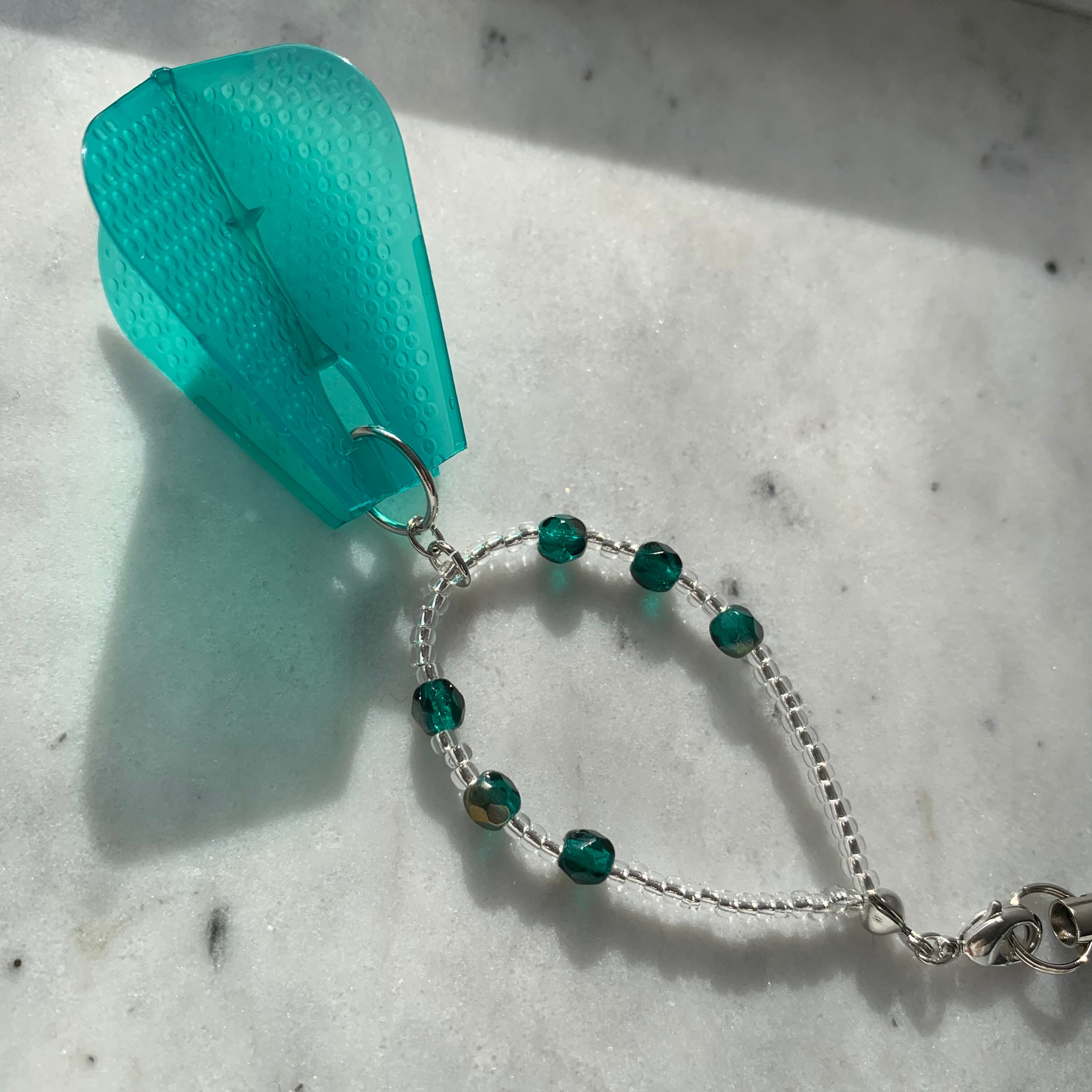 フライトキーホルダー◆Z-シェイプ/クリアグリーン/シルバー/シンプル/シルバー/エメラルドグリーン/ビーズ輪