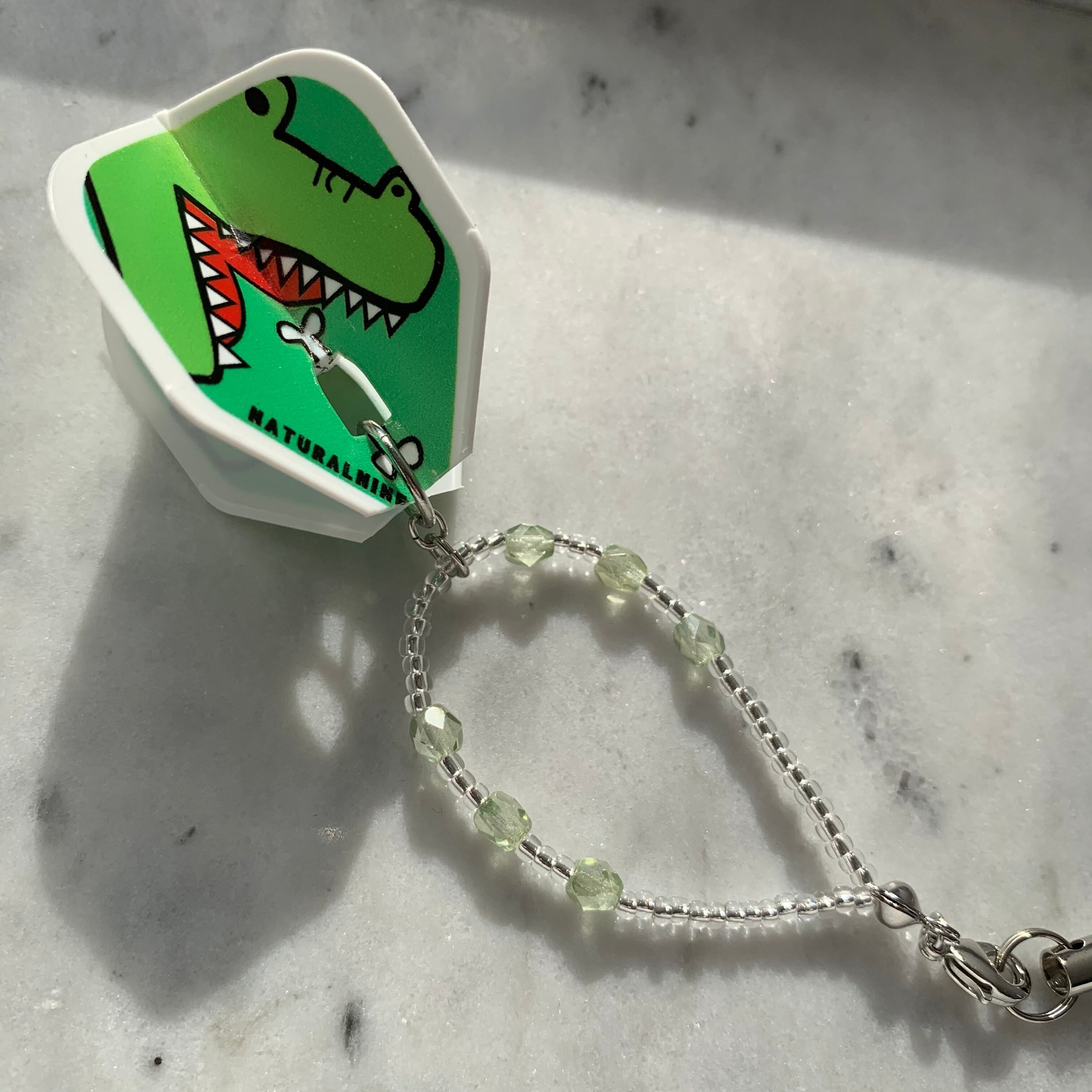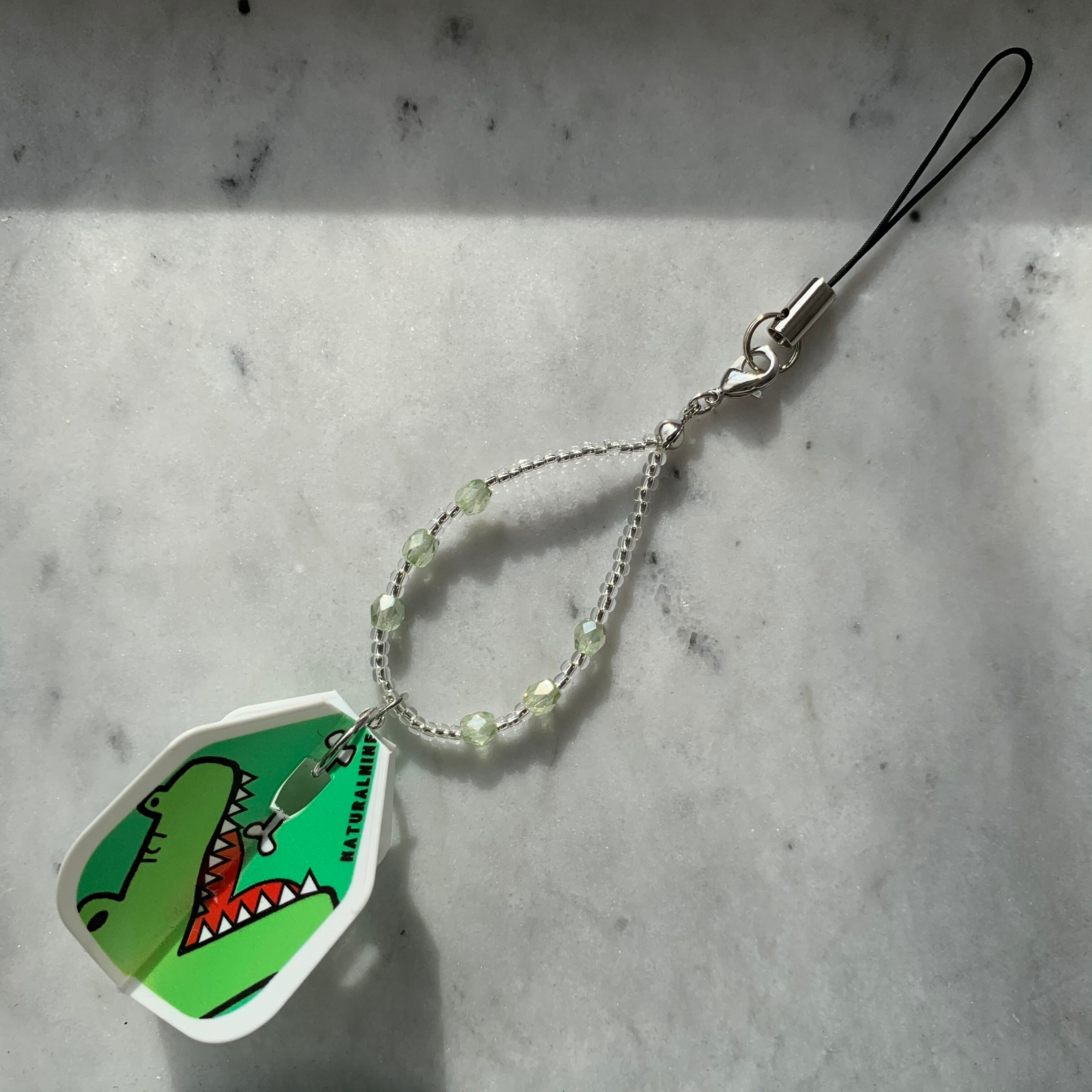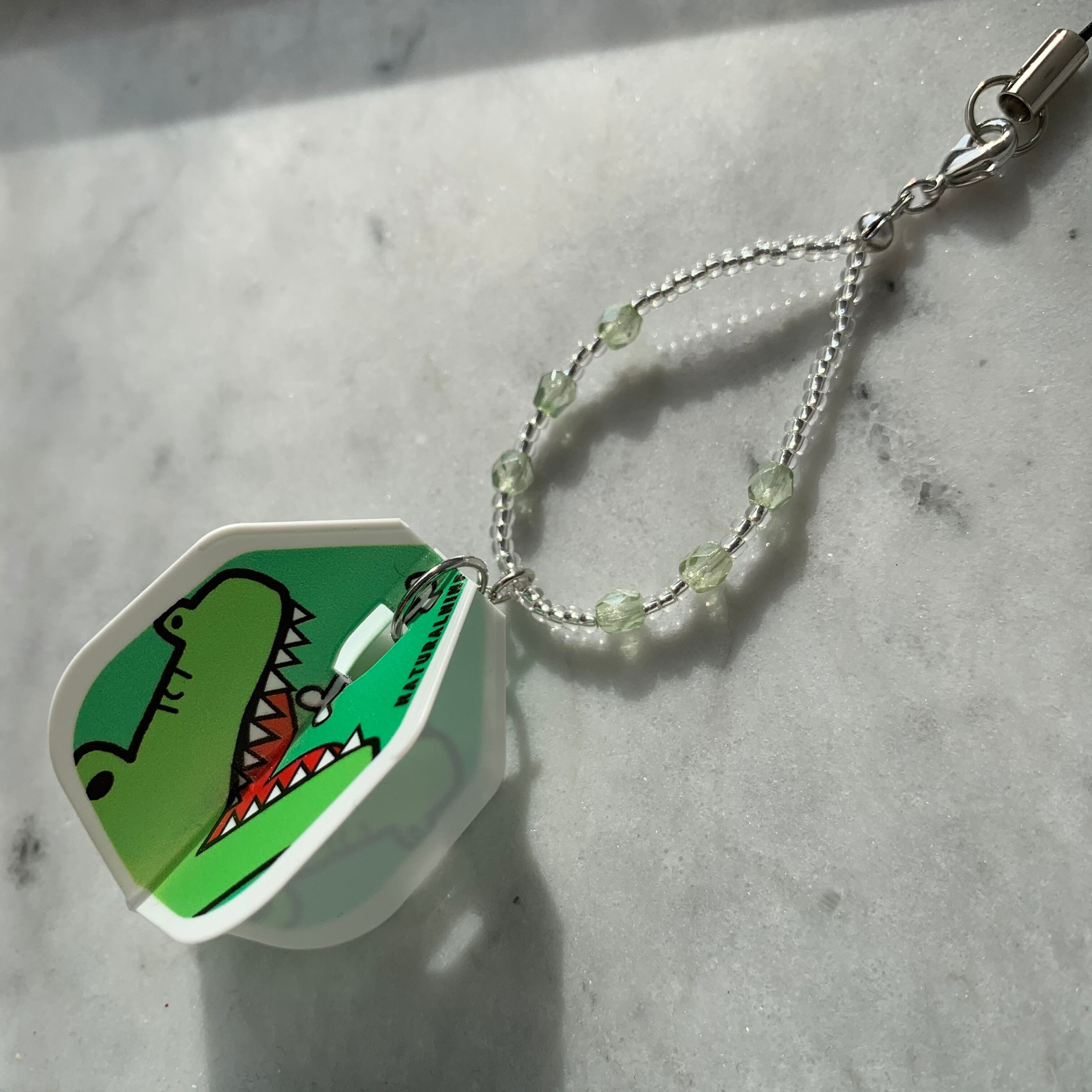 フライトキーホルダー◆シェイプ/ホワイト/グリーン/アニマル/シルバー/ワニ/ビーズ輪