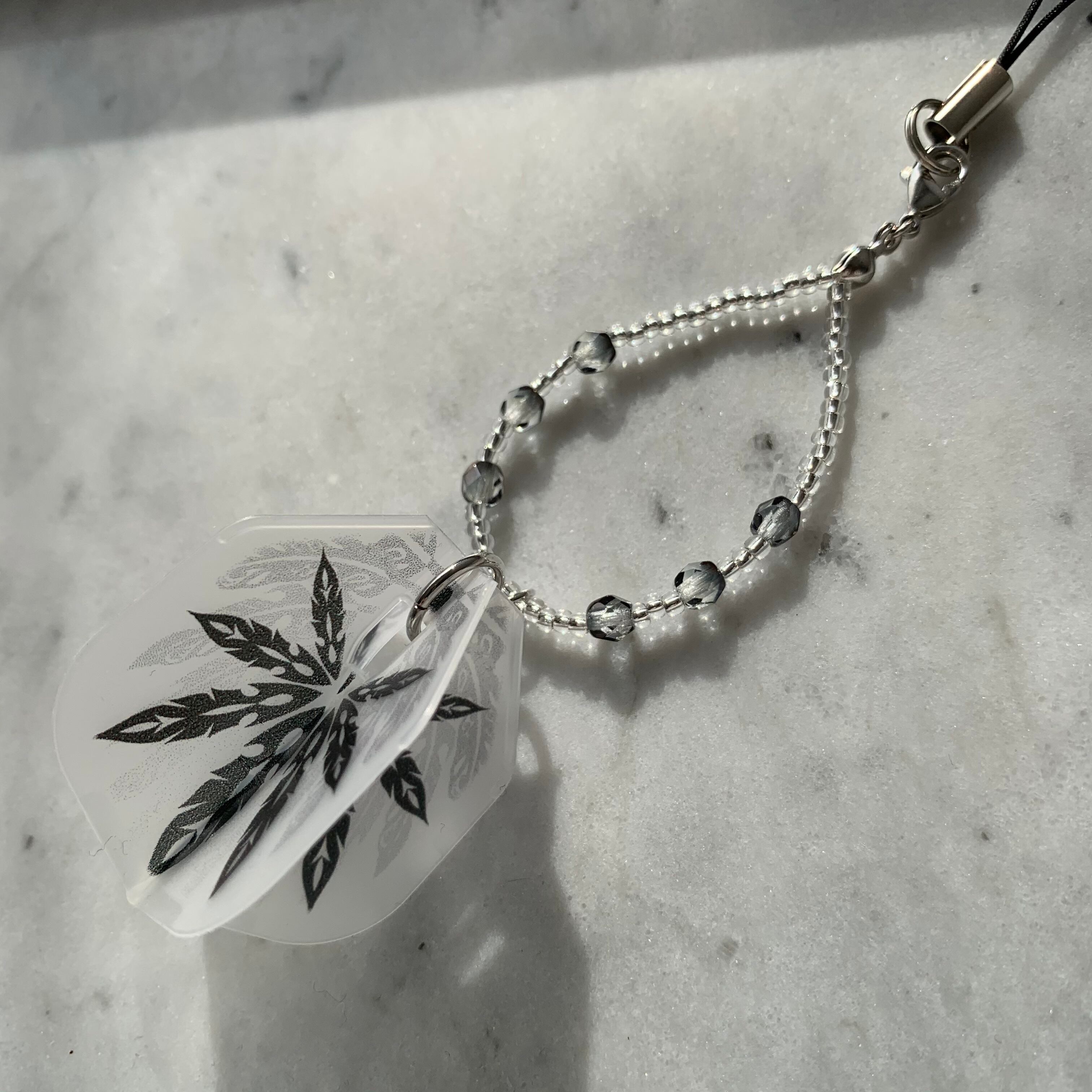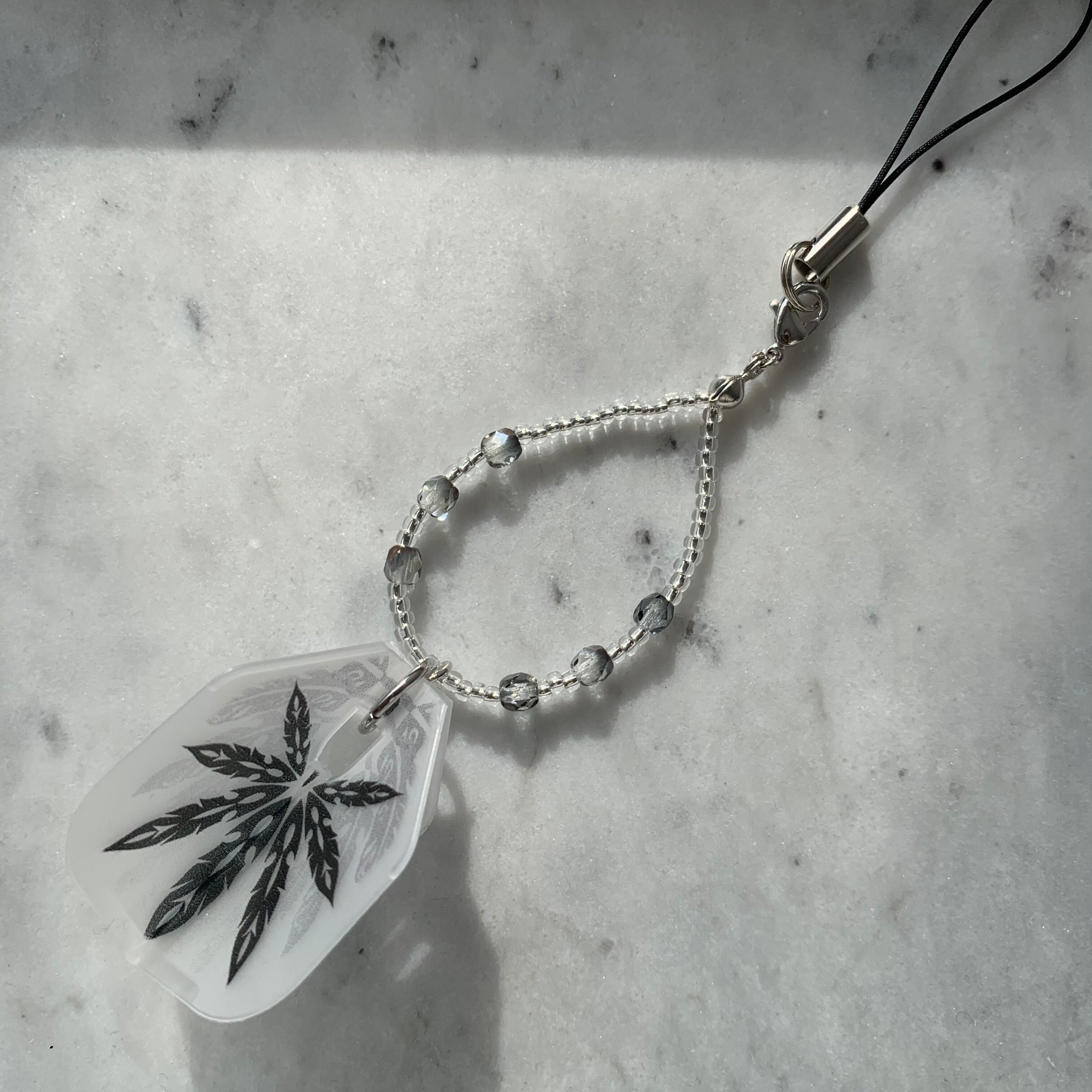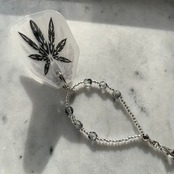フライトキーホルダー◆シェイプ/ホワイト/マリファナ//シルバー/ビーズ輪
