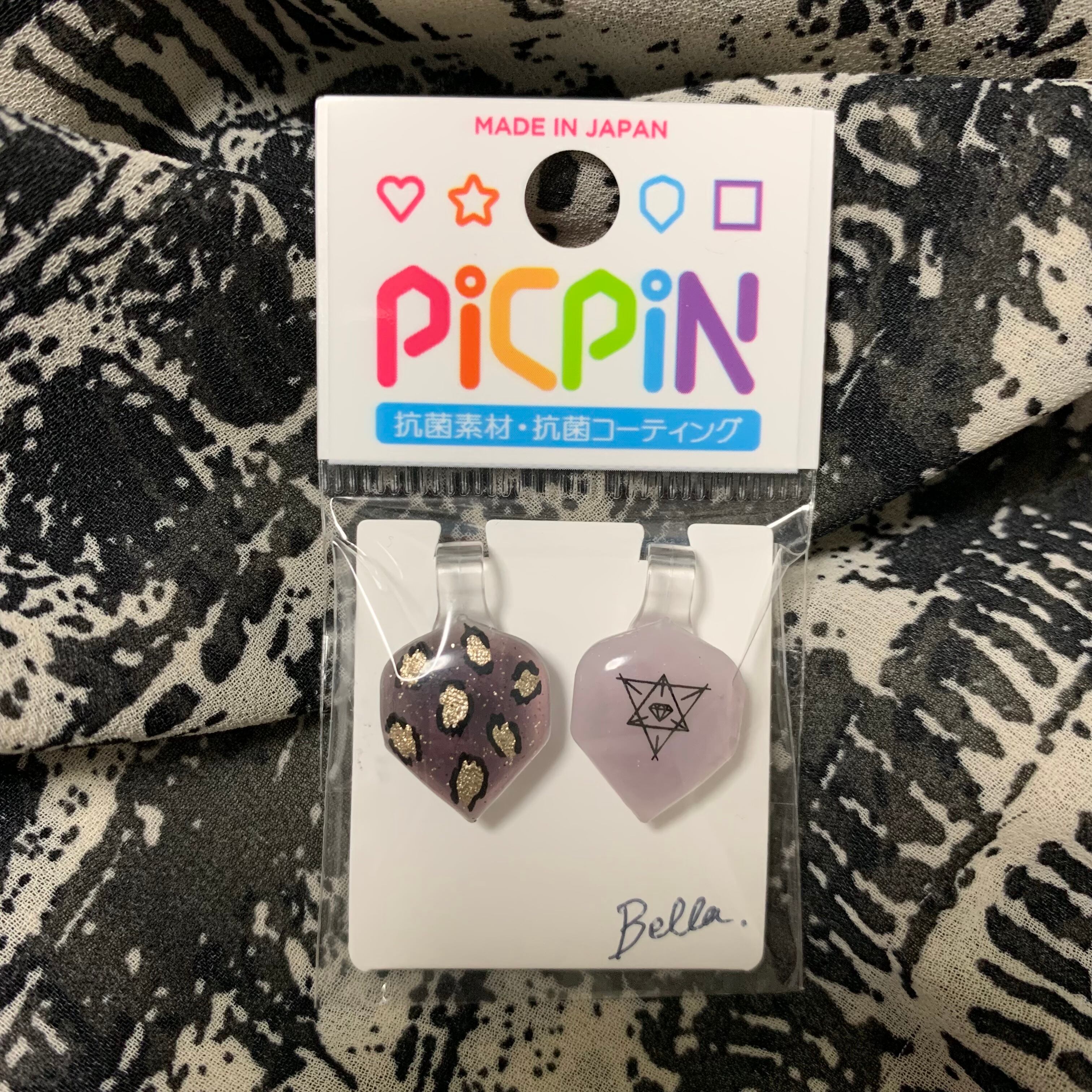 Bellaオリジナルピックピン◆ヒョウ柄ダークパープル×ミルキーパープルb
