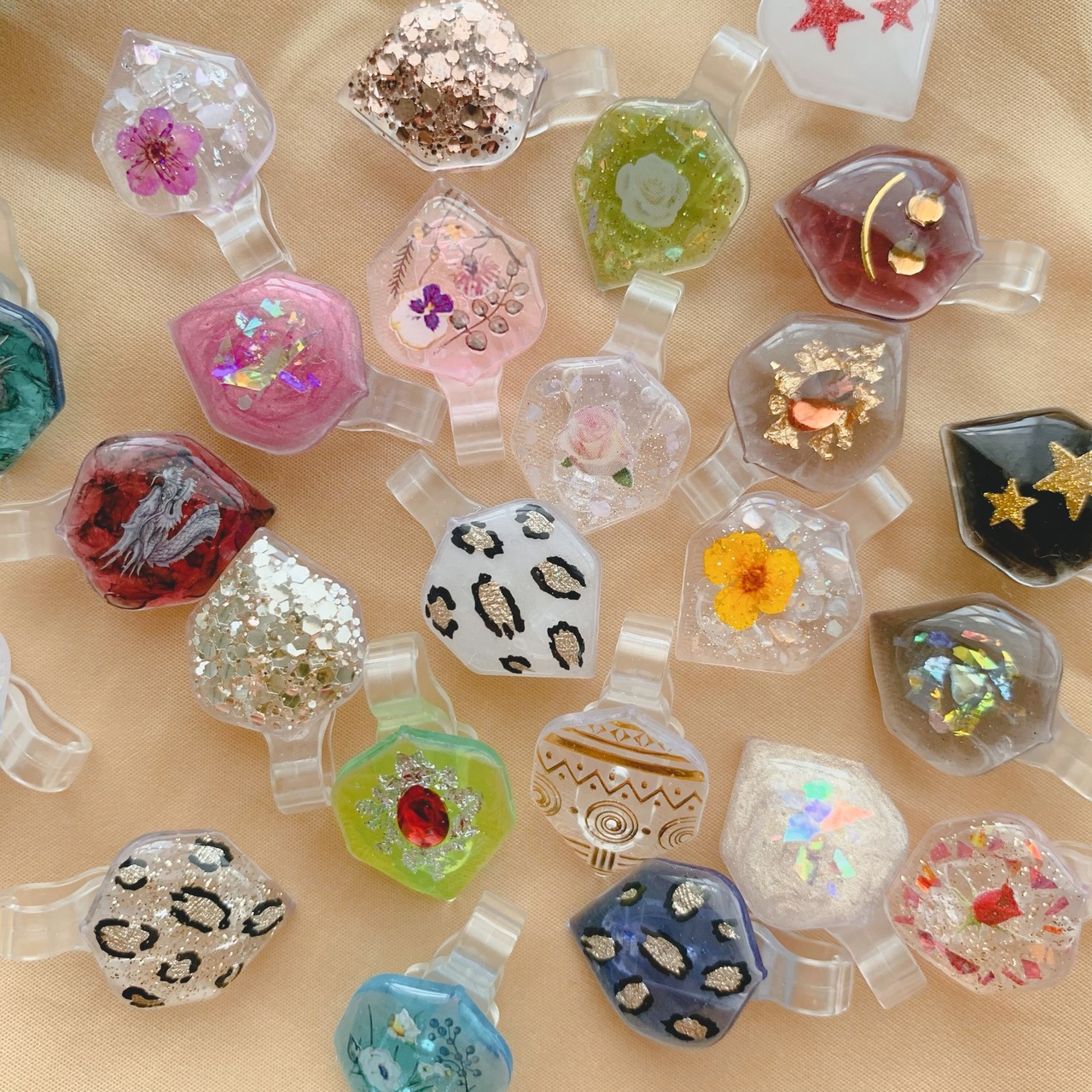 こちらの商品は樹脂(レジン)を使用したアクセサリーになっております。心を込めて製作をしておりますが、樹脂の性質上気泡やホコリが混入する場合がございます。